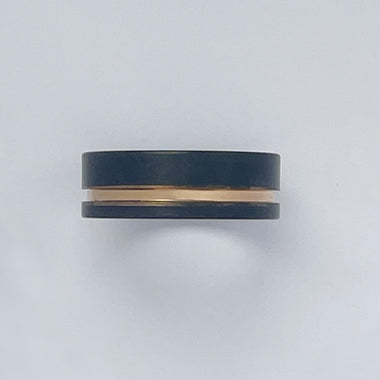 Black Flat Brushed Tungsten Ring with Off Center Rose Stripe