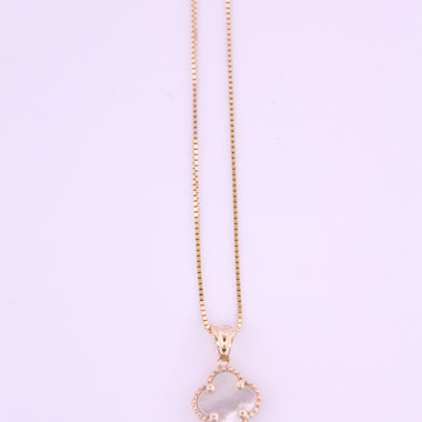 10K Yellow Gold Mother of Pearl Clover Pendant with Chain