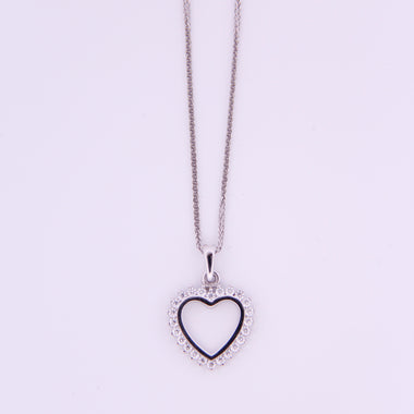 10K White Gold Cubic Zirconia Heart Pendant with Chain