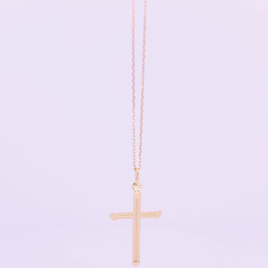 10K Faith Yellow Gold Hollow Cross Pendant with Chain