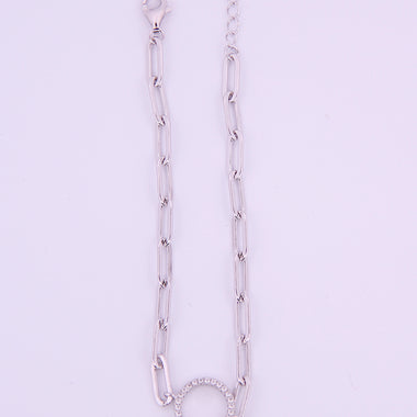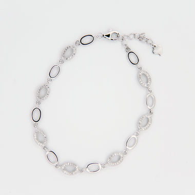 Sterling Silver Link Style Bracelet with Cubic Zirconia Circle