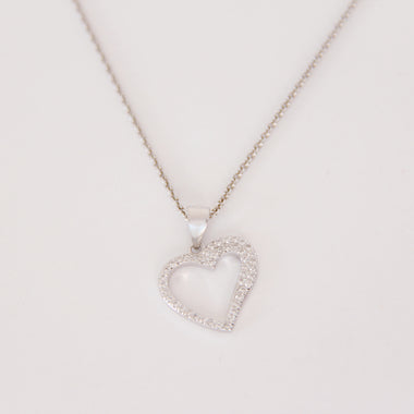 Heart Shaped Pendant and Necklace in Sterling Silver with Cubic Zirconia