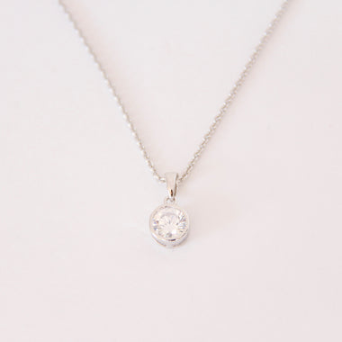 Round Bezel Solitaire Set Pendant in Sterling Silver with Cubic Zirconia